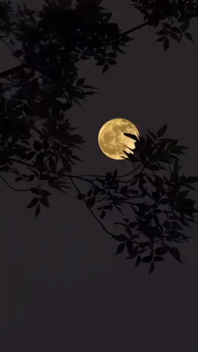 the full moon is seen through some trees