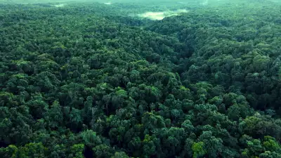 an aerial view of a forest with lots of trees