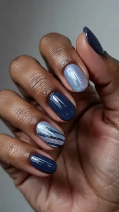New Blue Nails Ideas 2026: Navy Blue Mix and Match with Soft Neutrals