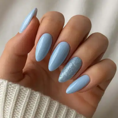 January nails ideas 2025–2026 with simple classy acrylic almond designs and blue colors inspo