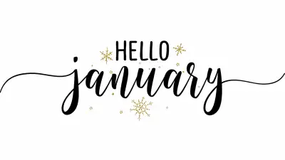 Hello January, Winter, Snowflakes, Calligraphy, White background, 5K